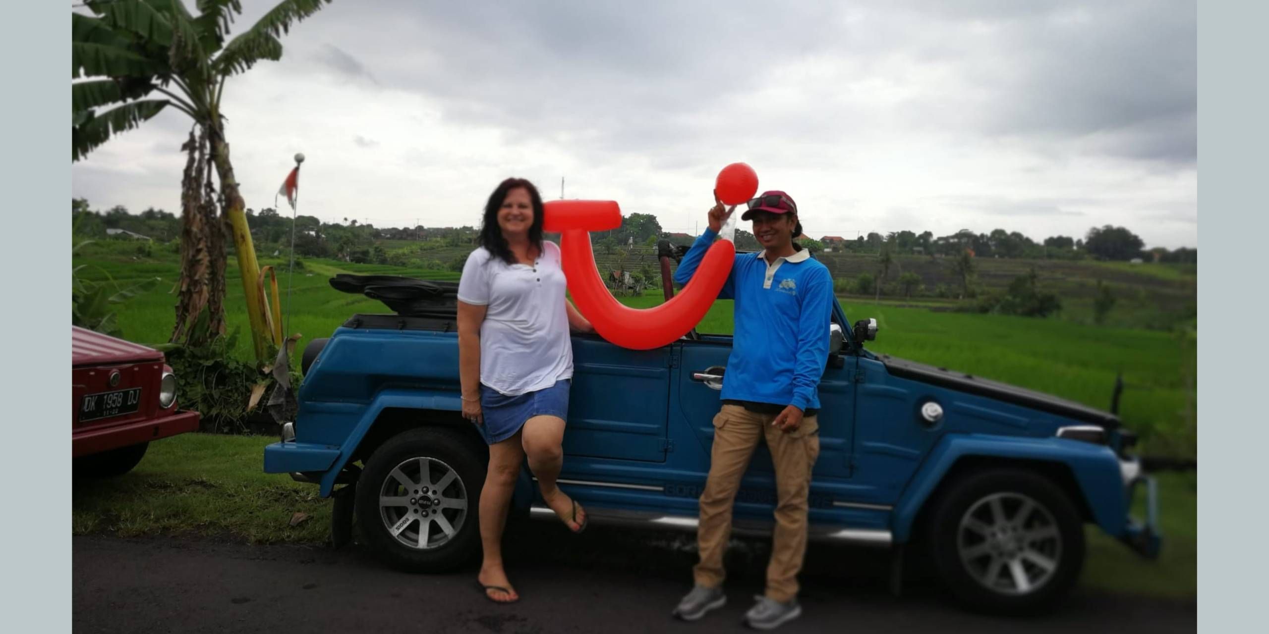 Mit dem Jeep habe ich mich auf den Weg zu den Reisfeldern und den bekannten atemberaubend schönen Reisterrassen von Tegallalang gemacht. Kennt Ihr roten Reis? Hier gibt es ihn direkt vom Feld und es ist fast schon meditativ zuzusehen, wie der Reis immer wieder mit einer Art Sieb in die Luft geworfen wird, um die leichte Spreu vom Wind wegtragen zu lassen.