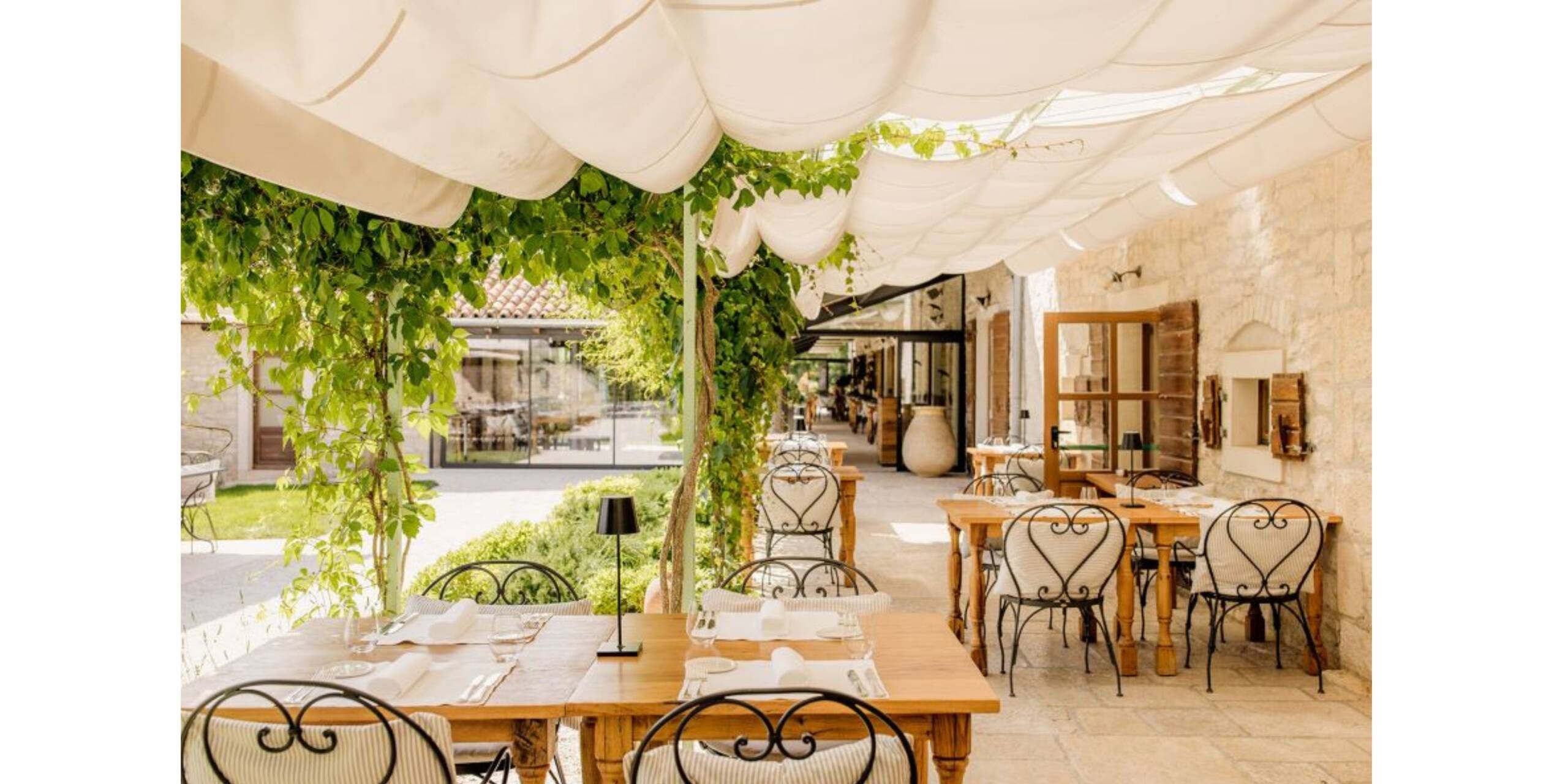 Was das Haus so besonders macht? Alles. Diese Mischung. Die Lage mitten in den Weinreben, die Geschichte, die Nähe zum Meer, der Einrichtungsgeschmack, die Kunst, das Spa, die exklusiven Wein- und Olivenöl-Tastings. Überhaupt die Gastronomie! Denn zum Hotel gehört auch das Meneghetti Restaurant, wo traditionelle istrische Küche modern interpretiert wird und frischeste Zutaten auf den Teller kommen – oft aus dem eigenen Garten. Der Dresscode beim Frühstück ist „casual“, beim Abendessen „elegant“. Weil beides so gut hierher passt.