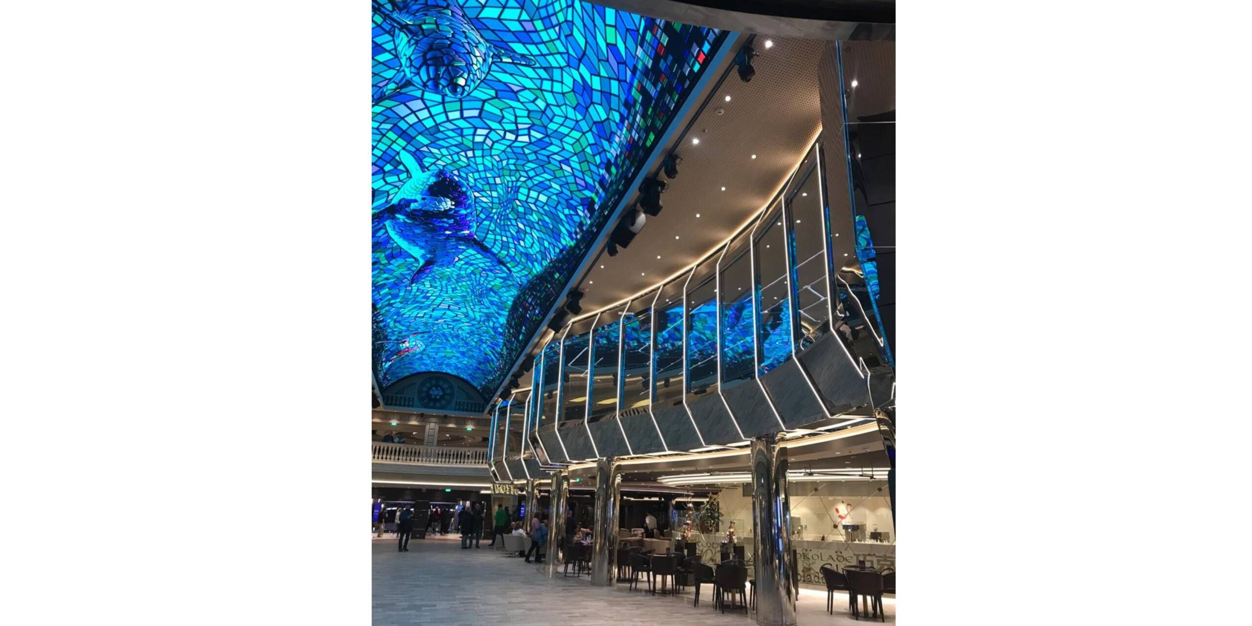 Sehr gelungen finde ich die Flaniermeile in der Mitte des Schiffes. Hier gibt es einen Juwelier, Confiserie, Boutiquen, Parfümerie, Souvernirshop, Eisdiele, verschiedene Bars und Restaurants.